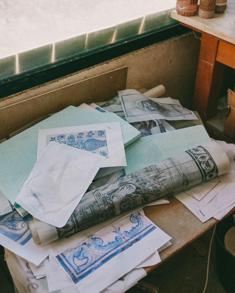Located in Azeitão, a small village in the South of Lisbon, Portugal, his tile making atelier is one of the last to use traditional techniques: each azulejo is molded, cut, glazed and decorated by hand with an incredible attention to detail. Ensuring the time-honored firmly based in Portugal techniques get the spotlight they deserve.