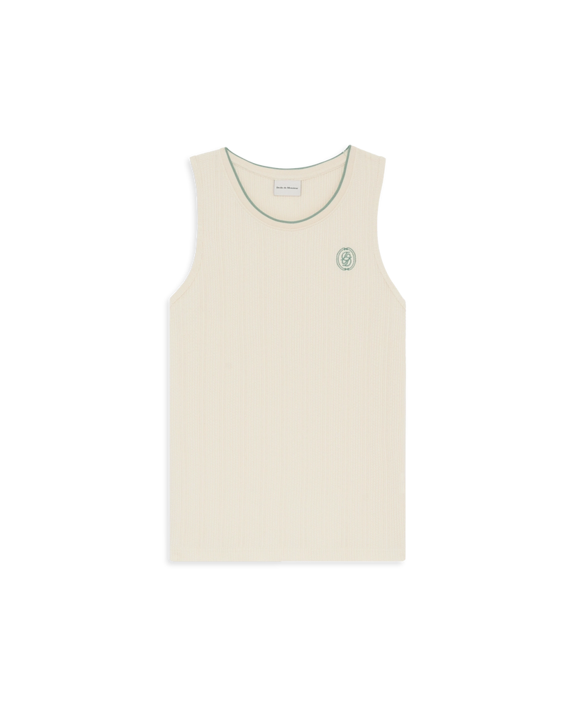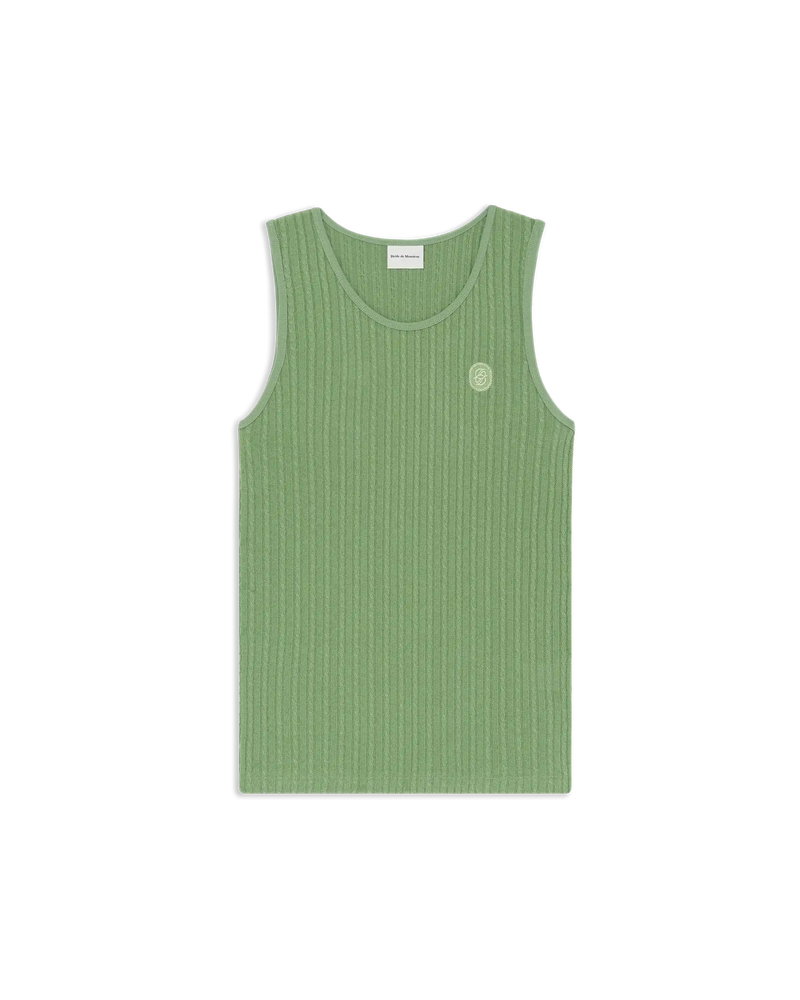 This long-sleeved kaki cardigan is knitted with a ribbed effect. It has a V-neck, dropped armholes, contrasting ribbed trims, five mirrored 'D' buttons at the front, a contrasting mirrored 'D' embroidery, and two front pockets.