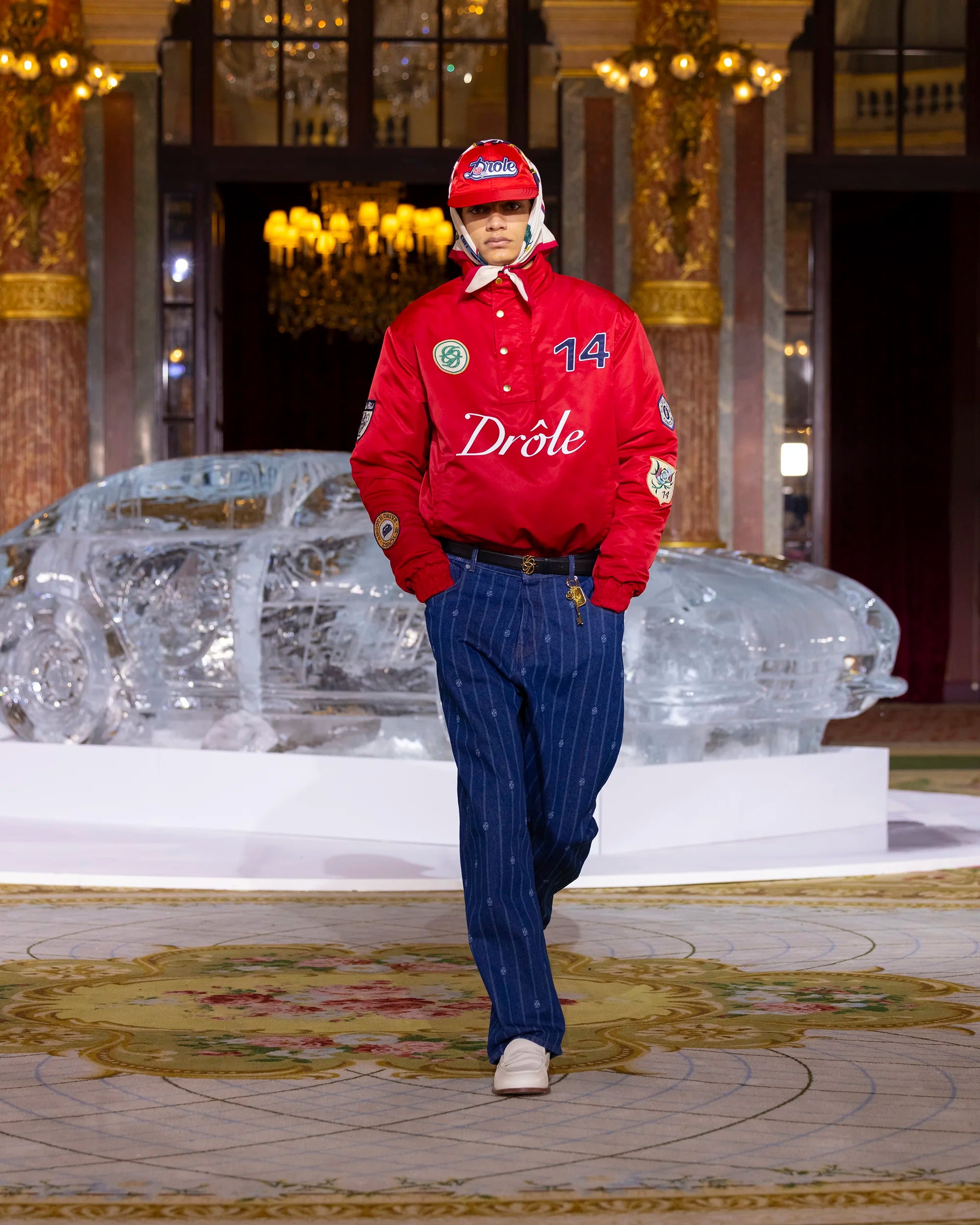 These blue 5-pocket 100% cotton jeans feature Tresse Monogramme stripes. They have an oversize fit, a low waist, engraved rivets on the front pockets, a leather patch on the back and an engraved denim button.