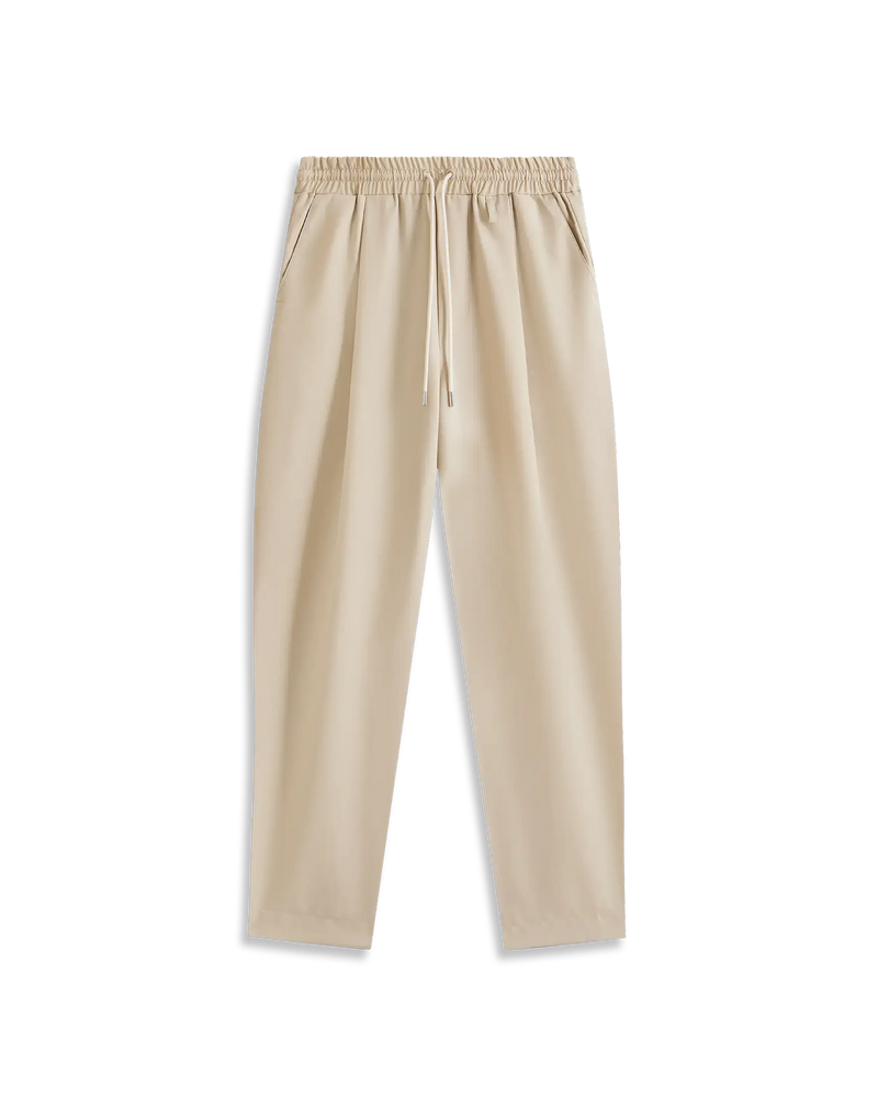 These black 3/4 length wool blend cropped pants have an elasticated drawstring waist, two Italian pockets at the front and two buttoned pockets at the back.